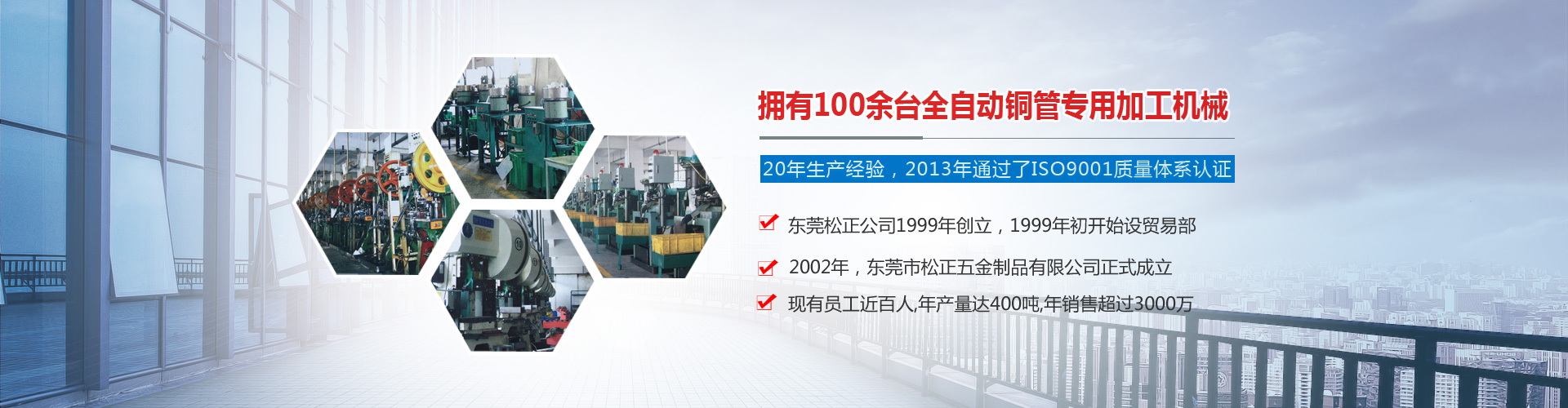 東莞松正公司1999年創(chuàng)立,1999年初開(kāi)始設(shè)貿(mào)易部,至2002年,東莞市松正五金制品有限公司正式成立。我公司專(zhuān)業(yè)從事銅管/鋁管/ 不銹鋼管、制造、研發(fā),累積了近20年的先進(jìn)生產(chǎn)經(jīng)驗(yàn),已于2013年6月通過(guò)了ISO9001質(zhì)量體系認(rèn)證。 公司現(xiàn)共有員工近百人,年產(chǎn)量達(dá)到400噸,年銷(xiāo)售超過(guò)3000萬(wàn).公司共設(shè)有7個(gè)職能部門(mén),分門(mén)別類(lèi)處理各項(xiàng)日常事務(wù),為方便溝通,還特設(shè)有總經(jīng)理信箱,員工有任何建議和意見(jiàn)均可由此向總經(jīng)理反應(yīng). 在硬件設(shè)施方面,公司現(xiàn)擁有全自動(dòng)銅管專(zhuān)用加工機(jī)械近壹百多臺(tái)和專(zhuān)業(yè)的檢測(cè)備,具有較強(qiáng)的生產(chǎn)和檢測(cè)能力。舉凡外徑在0.30mm~.....